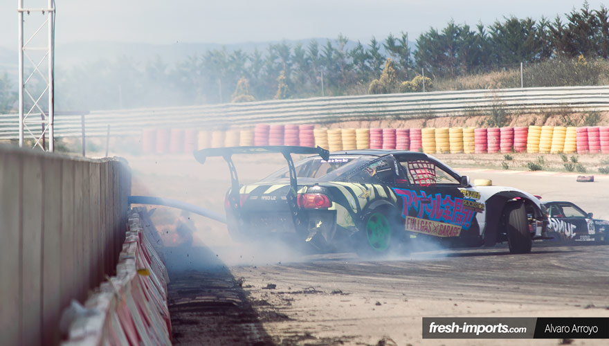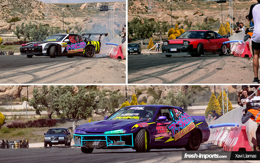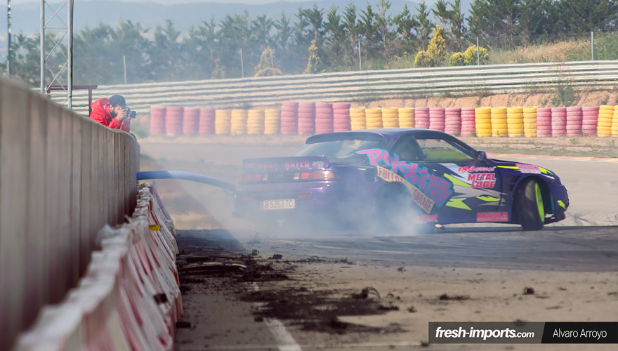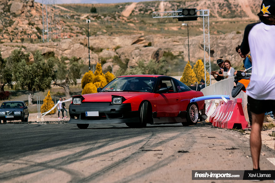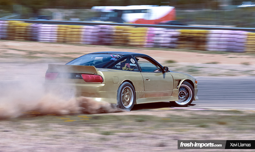 El segundo puesto se lo llevó Xavi con su S13. ¡Demostró un gran talento con su S13 dejando la esquina izquierda de su paragolpes trasero teñida totalmente de blanco!
