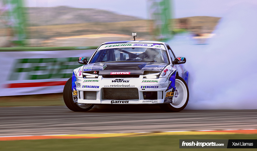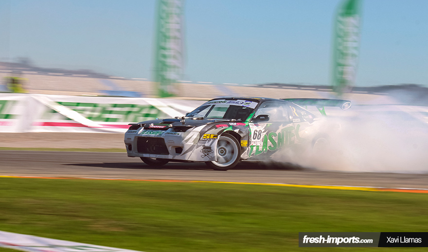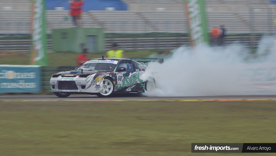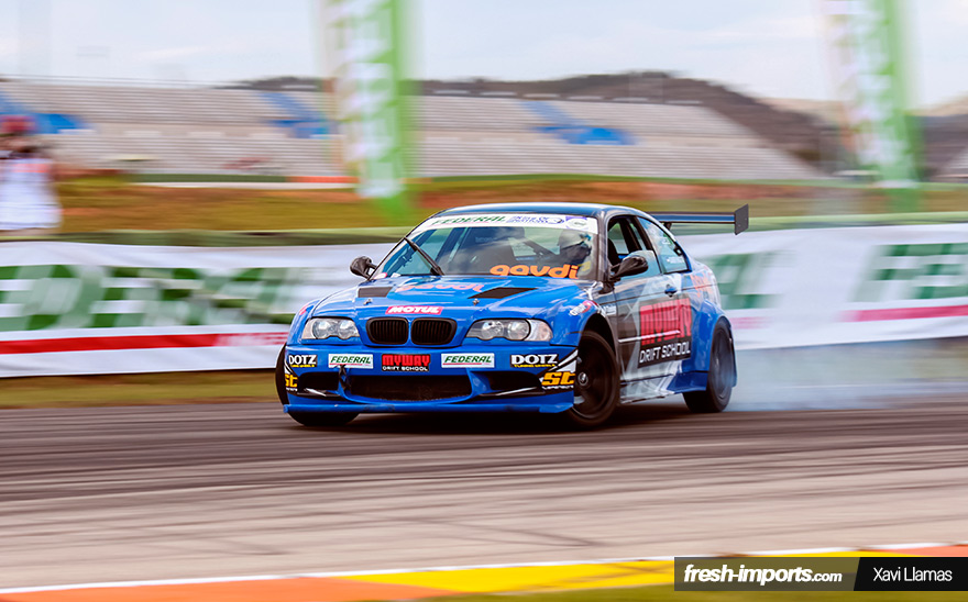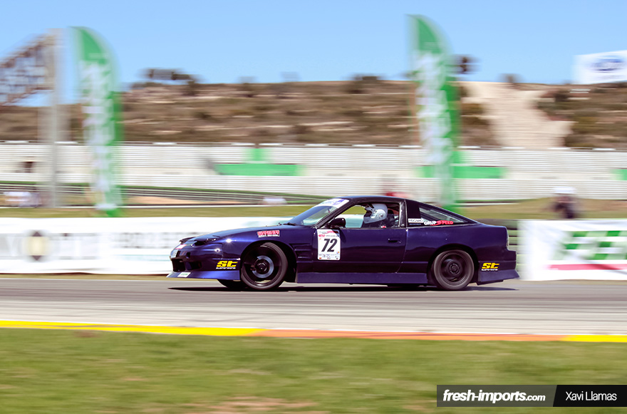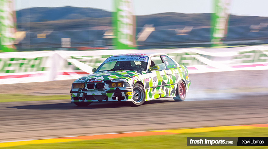 Tras una hora de entrenamiento de los pilotos amater y semi-PRO, llegaba el plato fuerte del día. Al coincidir este evento con el Exhibition Match del King Of Nations, los pilotos de la máxima categoría corrieron dentro de las mismas sesiones del fin de semana. Imaginaros pasar de ver un BMW 328i cruzar en una larga sección de 3 curvas, a ver un Nissan S13 con un VR38DETT, propulsor del Nissan GT-R 35, devorando neumáticos semislicks sin piedad alguna, o un BMW M3 E46 propulsado por un V8 con Nitro…
