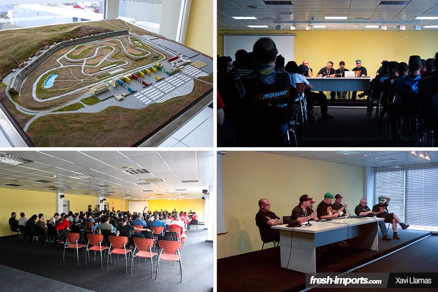 Al poco rato de estar por el paddock, nos avisaron que se iba a realizar en la sala de prensa el briefing con todos los pilotos, y estábamos invitados. Así que no perdimos esta oportunidad. Allí se trataron todos los temas posibles de carrera, precedidos por la información de la sesión clasificatoria de la tarde. En ese momento supimos los resultados tanto de la categoría AM y Semi-PRO como la de PRO. Explicaron el sistema de puntuación aplicado para las dos categorías también, algo distintos, ya que la potencia obtenida de los coches de la categoría pequeña puede ser de poco más de la mitad de cualquier coche de la categoría PRO.