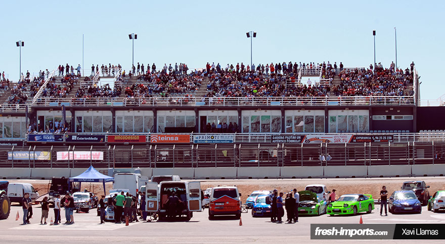 Descanso en la sección habilitada para el drift. Salimos de pista con el propósito de ir trabajando desde el mismo circuito en las fotos y por supuesto, comer. Teníamos que reponer fuerzas, ya que toda la mañana bajo un sol justiciero nos había agotado totalmente. Así que nos dirigimos al restaurante buffet del circuito, y con unas magníficas vistas, nos servimos (como no) un buen plato de paella valenciana. Eran las 14:30h y las mangas de clasificación empezaban a las 15:00h así que bajamos, cogimos todos los útiles necesarios y… ¡Acción!