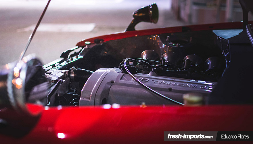 Debajo del capó, encontramos un motor 4AGE Twincam 20 Black Top que produce 160 caballos a 7,800 rpm. Como os podéis imaginar, no se trata del motor de origen, este vehículo ha dejado atrás la vieja serie 2K, 3K o 4K. Además del motor, encontramos elementos como los soportes de motor Cusco, embrague Exedy, cuerpos de admision independiente, bomba de gasolina Walbro, radiador Mishimoto…