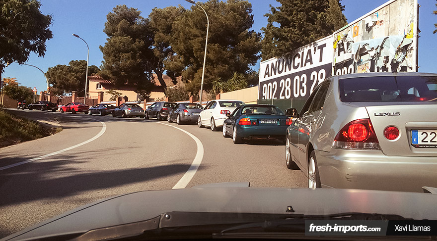 Una vez estuvieron todos reunidos, se dirigieron a la conocida Arrabasada, una carretera de curvas que va desde Sant Cugat a Barcelona, con la intención de relajarse mirando las vistas, de la ciudad condal de un lado, y de los coches de otro. No sabríamos decir que vistas nos gustan más.