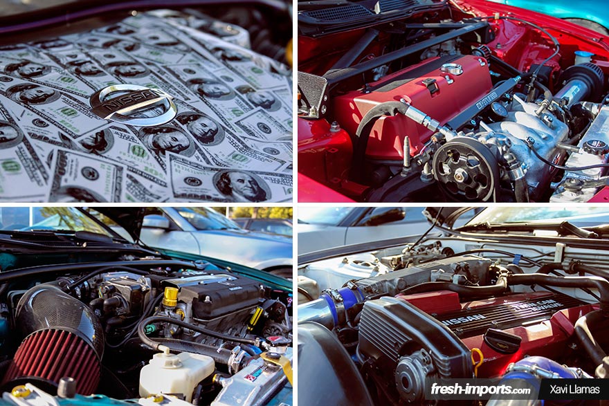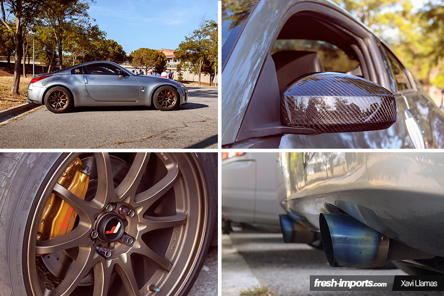 Victor con su Nissan 350z también estuvo presente. ¡No se pierde una concentración! Este Z lleva un Y-pipe Japspeed, tramo intermedio artesano y silencioso trasero Remüs, las llantas JR7, y como detalle curioso, la tapa del motor luce un diseño de dólares americanos, creada con hidroimpresión.