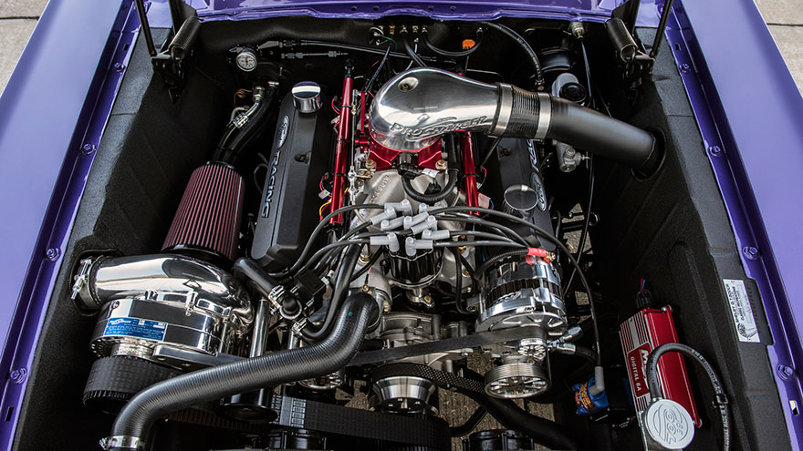 No existe una creación sobre una base americana a la cual no le levantes el capó y su motor te estremezca el corazón, y en este caso el encargado es un motor 7.0 V8 de Ford Performance que desarrolla 780 cv. Con un eje de transmisión en fibra de carbono se envía toda esta potencia a las ruedas traseras. Wilwood es el encargado de volver todo a la calma con unos frenos de seis pistones. Las suspensiones a medida con muelles QA1 delante y Varishock atrás mantienen todo bajo control, y para morder el asfalto han instalado unos neumáticos BF Goodrich en las ruedas de 18 pulgadas.