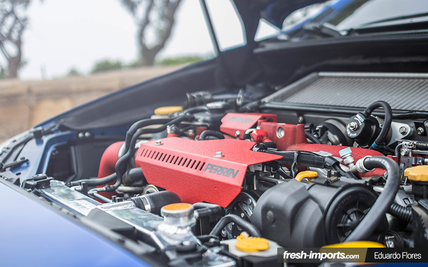 – Perrin Boost Controller, crank pulley, air/oil separator.