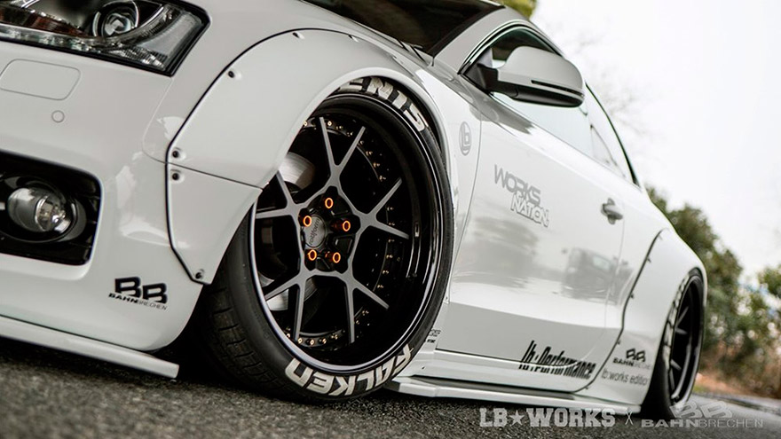 El kit se compone de splitters frontales y laterales, un difusor trasero, alerón y por supuesto los característicos pasos de rueda que identifican a LB Performance. Sin duda, se trata de una muy buena forma de conseguir que un A5 destaque entre la multitud.