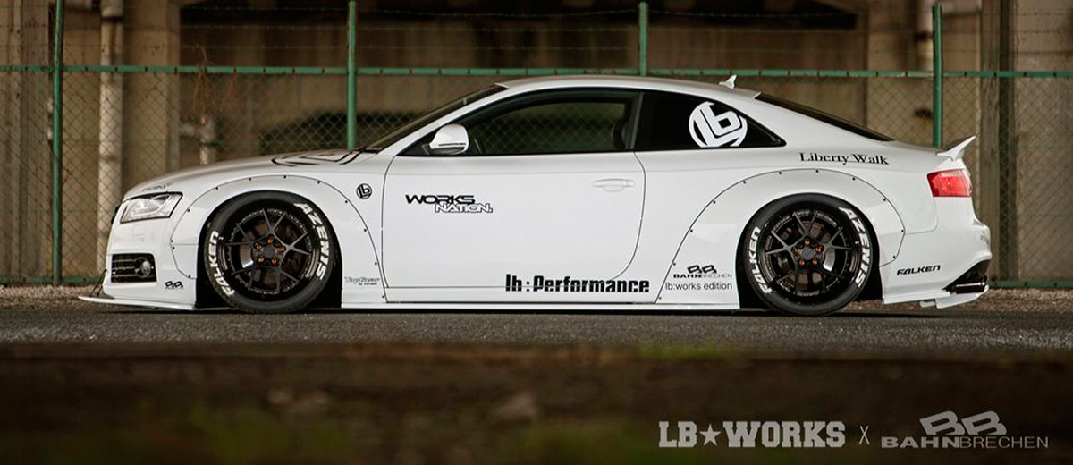 Es el caso de la última incorporación de Liberty Walk, el Audi A5 y S5. El preparador describe el bodykit con un estilo agresivo, y en parte no le falta razón, no parece mucho menos escandaloso que el Aventador.