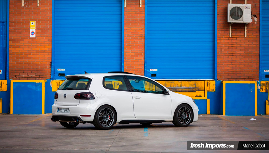 Un trabajo sencillo, limpio y funcional. Es lo que Manel Cabot ha querido siempre para su Volkswagen Golf MKVI GTI. A simple vista podemos apreciar una reducción en la altura del coche, unas OZ Superleggera y un escape que no parece venir de serie… ¿Hablamos de prestaciones? Mejor tratamos este asunto en cuanto esté el reportaje al completo.