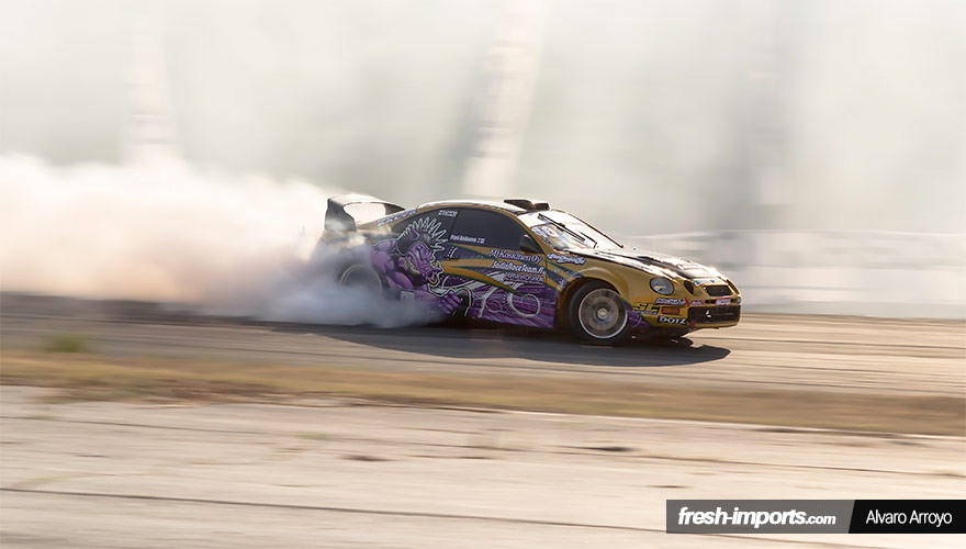 Una vez dentro, coincidió que uno de los primeros coches que salieron a estrenar el nuevo trazado fue el finlandés Pasi Koliseva con el Celica mencionado anteriormente. No esperaba sorprenderme tan temprano, ese Celica, sin duda alguna, es el driftcar más bestia que he visto en mi vida, o por lo menos de momento. El sonido de la transmisión de dientes rectos, mezclados con el grito de ese 6 cilindros turboalimentado me erizó el vello. Era una mezcla de sentidos entre el oído y la vista que al que le guste este mundo le hace sentirse como en el paraíso.