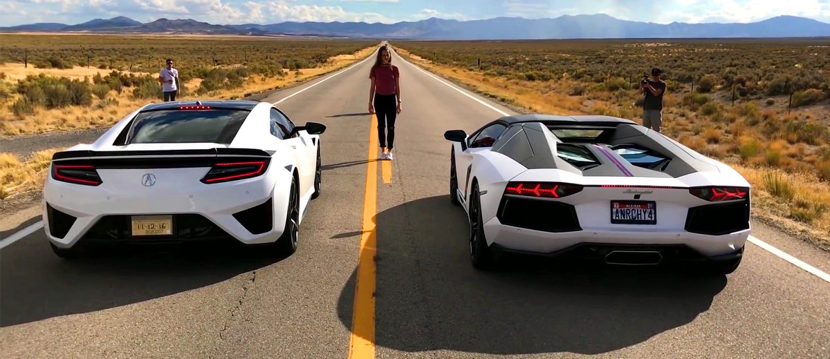 Una carrera de aceleración entre un Acura NSX vs. un Lamborghini Aventador. ¿Un resultado fácil de acertar?