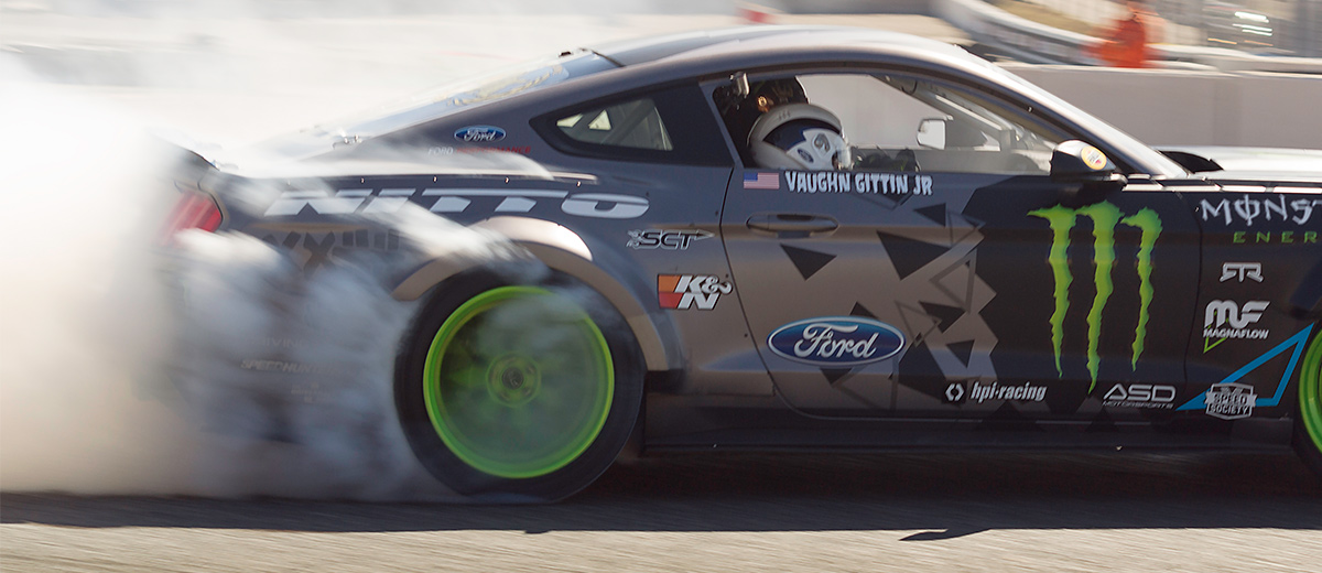 Drift en Montmelo. Vaughn Gittin Jr. se come el asfalto con su nuevo Mustang RTR.