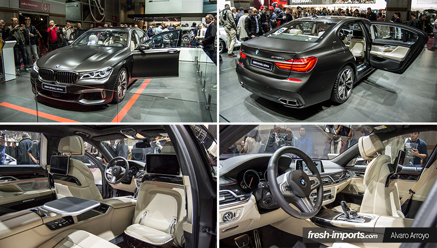 A pesar de no tener el pase de prensa, algo que me gustaría remarcar es la amabilidad de los expositores, que sin dudarlo ni un momento te dejaban entrar a adorar las mejores máquinas como por ejemplo este increíble BMW 760Li. Una berlina que monta un V12 birturbo capaz de entregar 600cv y 800 N·m de par máximo desde las 1500 RPM. Con este paquete M la velocidad punta no está limitada a 250km/h como la mayoría de berlinas potentes, sino que la limitación se situa a los 305 km/h. Nos preguntamos cual será su velocidad punta real…