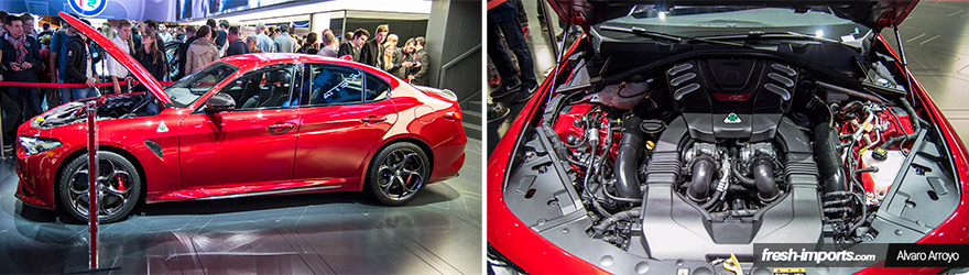 Justo al lado del stand de Ferrari encontramos a otra marca italiana muy importante, Alfa Romeo. Allí vimos los ya conocidos 4C pero el que más destacaba era el Giulia QV. La nueva berlina italiana se ha construido para mojarle la oreja a los alemanes, y de momento parece que lo están consiguiendo.