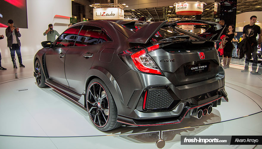 La exposición de Honda era increíble, nada que ver tampoco con la que había en Barcelona. Allí estaban el Civic Type R FK2, delante del McLaren-Honda MP4-31 y justo al lado encontramos este concept car también desvelado allí en Paris. Se trata del Civic Type R 2017.