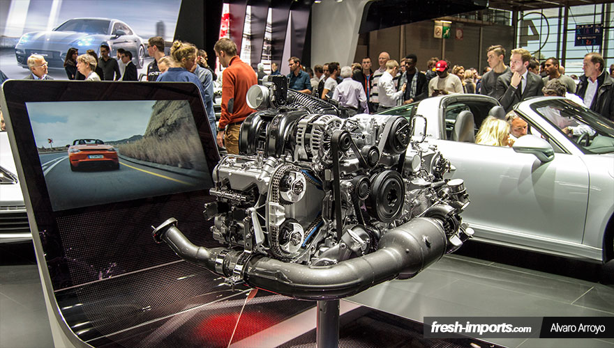 Otra de las marcas de la alianza Volkswagen como es Porsche, tenía allí expuesto su innovador 4 cilindros boxer turboalimentado que montan los nuevos Porsche 718 Boxster y Cayman.