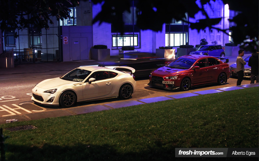 Como el viaje a Londres no lo hice solo, Andy sugirió que subiera a bordo del Mitsubishi Lancer Evolutión IX de Ashleigh para ir un poco más cómodos, ya que en la parte de atras del Toyota GT86 íbamos a ir algo apretados. Cómo no, el tema principal de nuestra conversación eran los coches y descubrí, que a parte del EVO, al igual que yo, también era propietario de un Nissan 350z.
