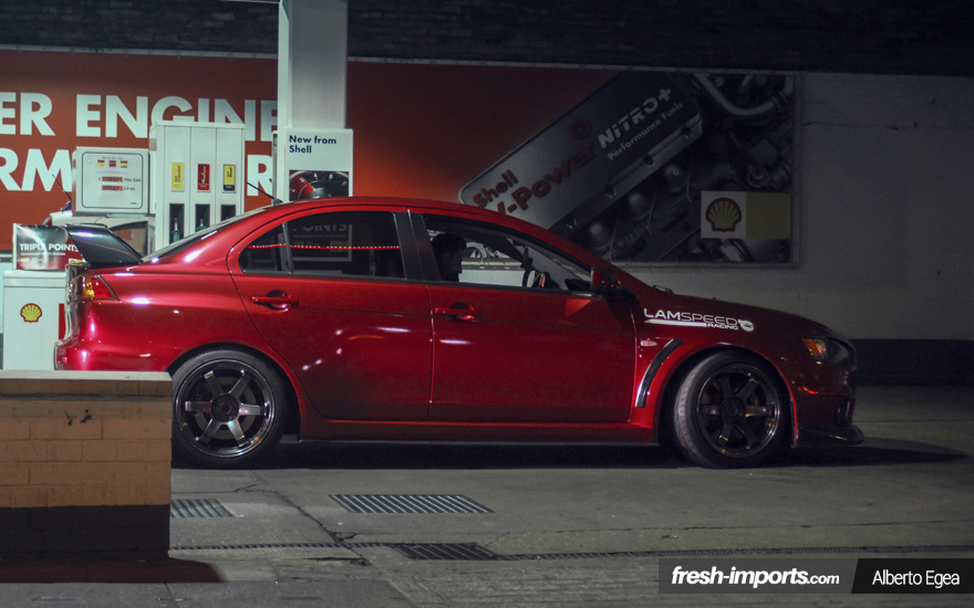 La primera parada de la noche, para no perder la costumbre, fue en una gasolinera. Aquí Ramin repostó con su Lancer Evolution X.