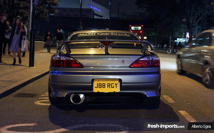 No pude evitar esconder mi rostro de asombro al ver el Nissan Silvia S15 de Jorge “@jorgiidej“. Lo tenía cuidado al más mínimo detalle y como bien sabéis, es un coche difícil de ver por nuestras tierras, precisamente por ser un RHD orientado al mercado japonés. Los chicos me preguntaron que entre todos los que habían allí, cual era el que más me gustaba… y si! lo reconozco! Tanto el Evo IX como el X lucían espectaculares, pero los tengo más vistos que este modelo. Así que me decanté por el último S-Chassis.