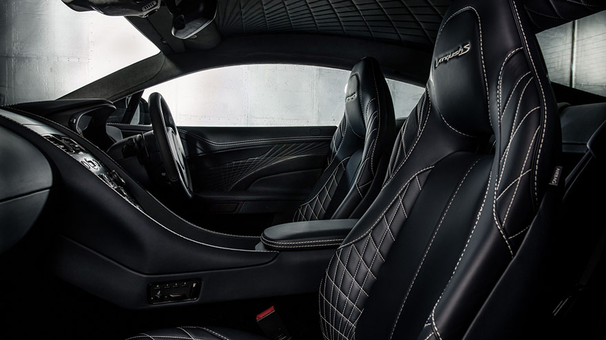 Dentro del habitáculo encontramos una nueva tapicería de cuero Filograph, combinado con nuevos materiales para crear una atmosfera única. El detalle final, está en los reposacabezas, donde Aston Martin ha bordado el nombre de su obra maestra “Vanquish S”.