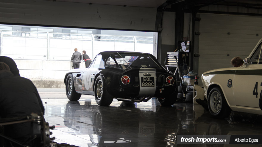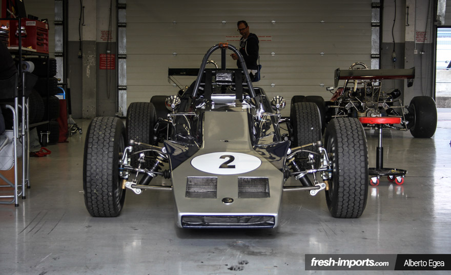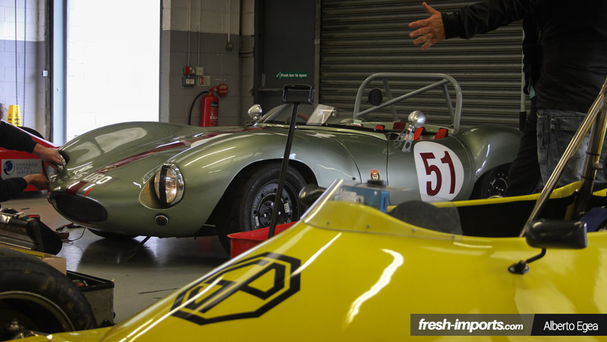 La zona de boxes era como un museo. Entré a observar como los mecánicos ponían a punto bestias con más de 40 años encima y que lucían como el primer día. En estos momentos es cuando uno recuerda las escasas fotografías o secuencias que existen de estos coches rodando en aquella época, imágenes en blanco y negro y totalmente distorsionadas… No me gusta tocar, le tengo muchísimo respeto a los coches, para mí es una debilidad admirar estas obras de arte y tengo que reconocer que alguna vez se me ha escapado la mano… Cuando existe un sentimiento tan profundo, al palpar con delicadeza alguna de sus características, uno hace un corto pero intenso viaje en el tiempo.