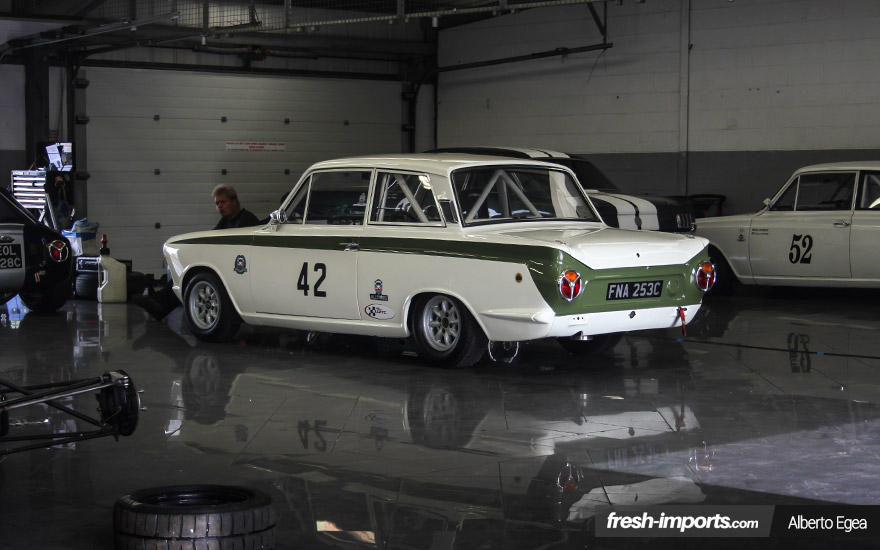 Y con su decoración original, nos encontramos este Ford Lotus Cortina, un sport saloon de alto rendimiento producido en el UK por Ford en colaboración con Lotus. Equipaba un motor de 1.557 cc y 106 caballos de potencia, además de compartir la misma caja de cambios del Elan. No tendrá una impresionante línea, pero fue una agradable sorpresa encontrármelo una vez más.