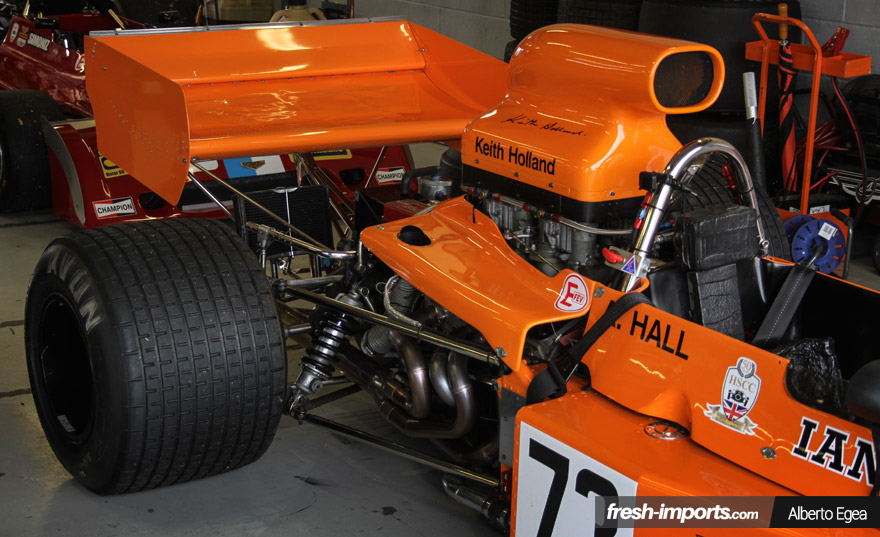 Los Trojan T101 venían equipados con motores Cosworth V8 de 465 caballos y tocaban techo a 10500 revoluciones por minuto. El hilo musical que desprendían los escapes Simpson es sin duda uno de los mejores de la historia de la Formula 5000.