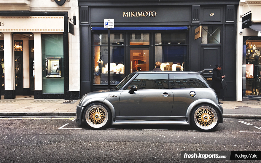Además, algo que me gustó mucho de la ciudad, son los planos que hay para la fotografía de automoción. Fijaros donde está situado este Mini cooper S con llantas BBS. Parece que el lugar haya estado estudiadísimo pero no lo estuvo para nada en absoluto. Se trata de una plaza de estacionamiento de lo más común en el centro de la ciudad.