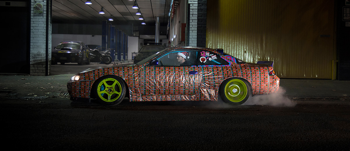 Fue un proceso complejo, que consistía en, literalmente empapelar el coche con metros y metros de papel de regalo, no se trata de ningún vinilo. El proceso para el S14a fue más sencillo debido a sus piezas amovibles como aletas traseras, taloneras, paragolpes, etcétera.