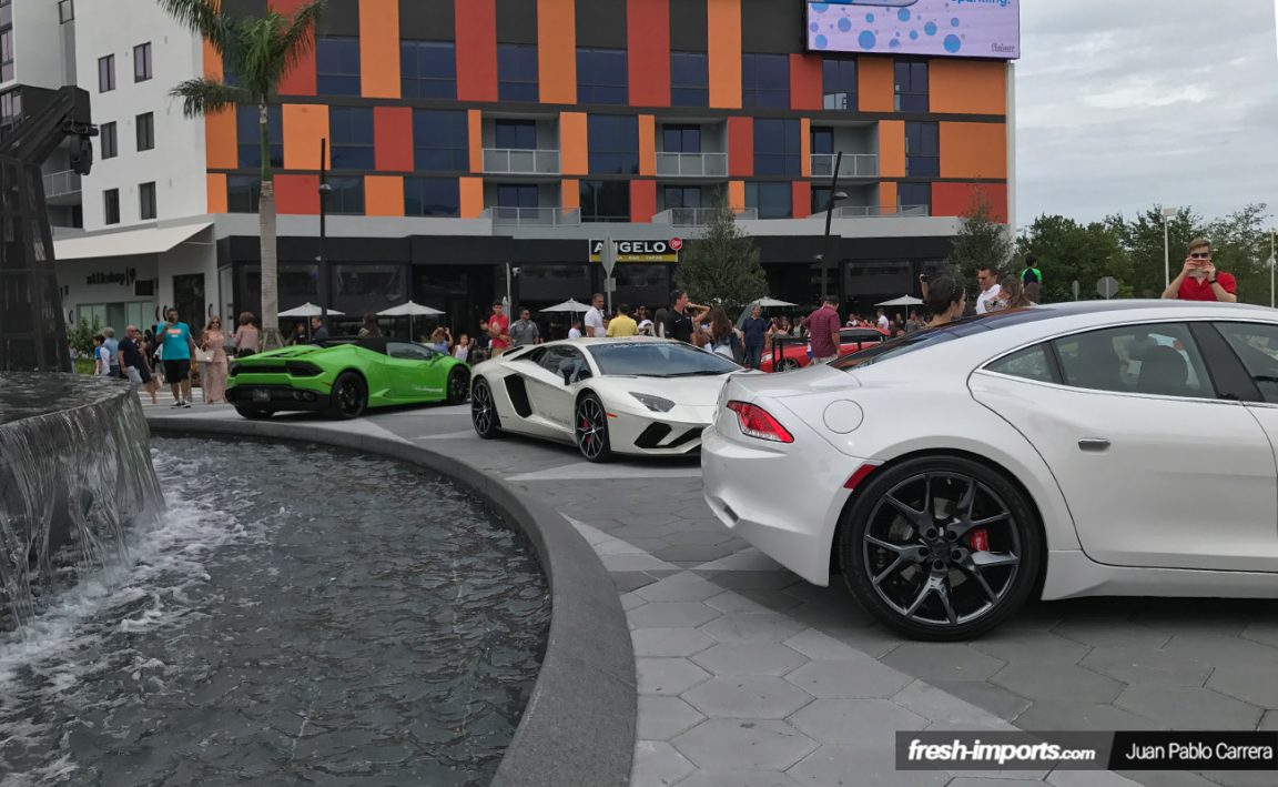 Tampoco es raro encontrar coches de gran valor y prestaciones en meetings. En muchas ocasiones los mismos concesionarios ceden varios ejemplares. Lo hemos vivido también en Miami con el evento de Prestige Imports, un concesionario que siempre tiene lo último en cuanto a Lamborghini se refiere. En este evento puso su granito de arena también.